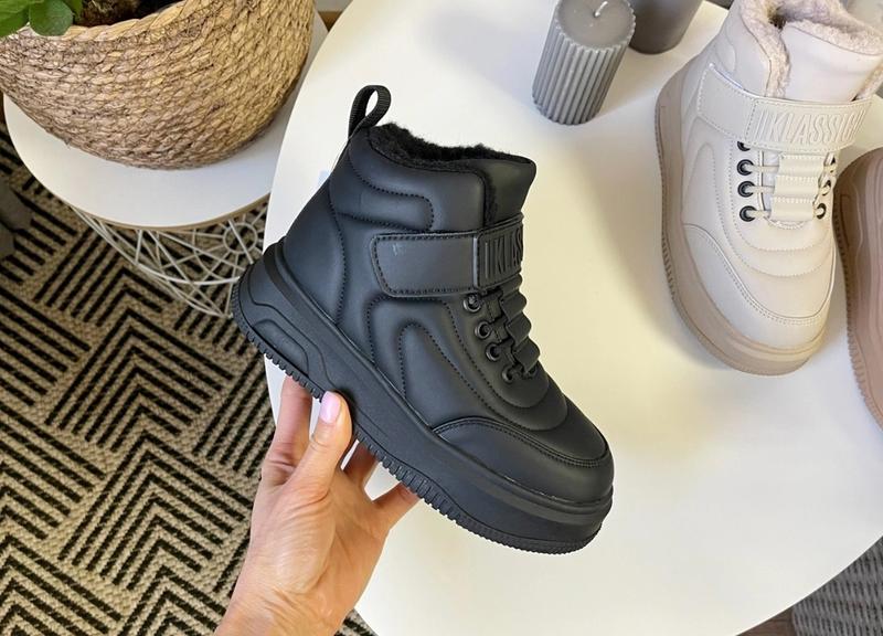 Мега стильна новинка тм Том.М Верх якісна матова еко шкіра Фіксація липучка Всередині густе тепле хутро ( Натуральна овчина 60%). колір чорний лена 33 розмір 21.3 см 34 розмір 22 см 35 розмір 22,7 см (2 шт 36 розмір 23 .3 см (2 шт