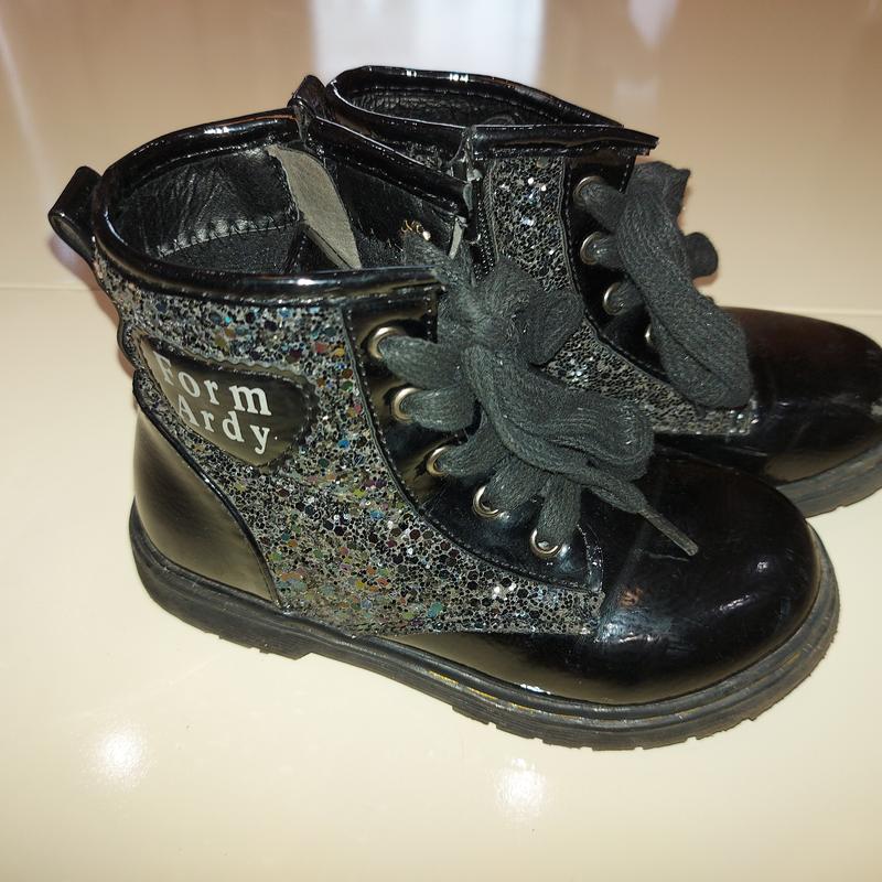 Деми сапожки ботинки для девочки. на шнурках и сбоку на замочке. В хорошем состоянии. Прекрасно смотрятся на ножке. Размер стельки 17-17,5 см. Трещи сбитый носочек. Почкики не искривлены. Внутри утеплены флисом