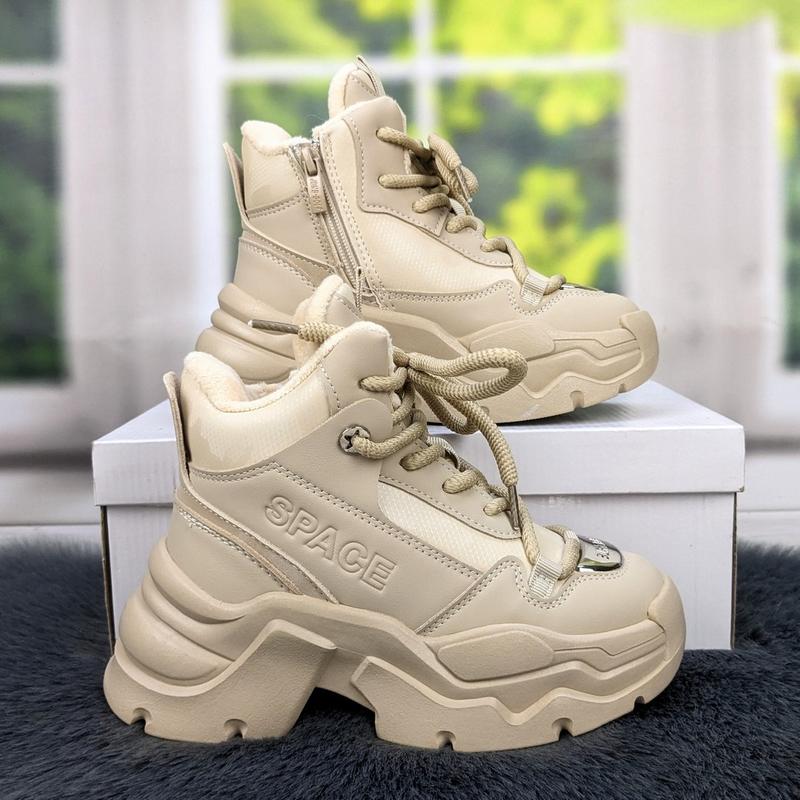 Стильные зимние ботинки для девочки на высокой объемной подошве. Верх - эко-кожа Подкладка - мех шерстяной (овчина) Застежка - шнуровка и боковая молния Подошва ПВХ, высота подошвы 3-5,5 см Высота ботинка от подошвы 9,5-10,5 см Для выбора своего размера, смотрите размерную сетку на данную модель: 32р - 20 см продано 33р - 20,5 см 34р - 21 см 35р - 21,5 см 36р - 22,2 см продано 37р - 23 см продано