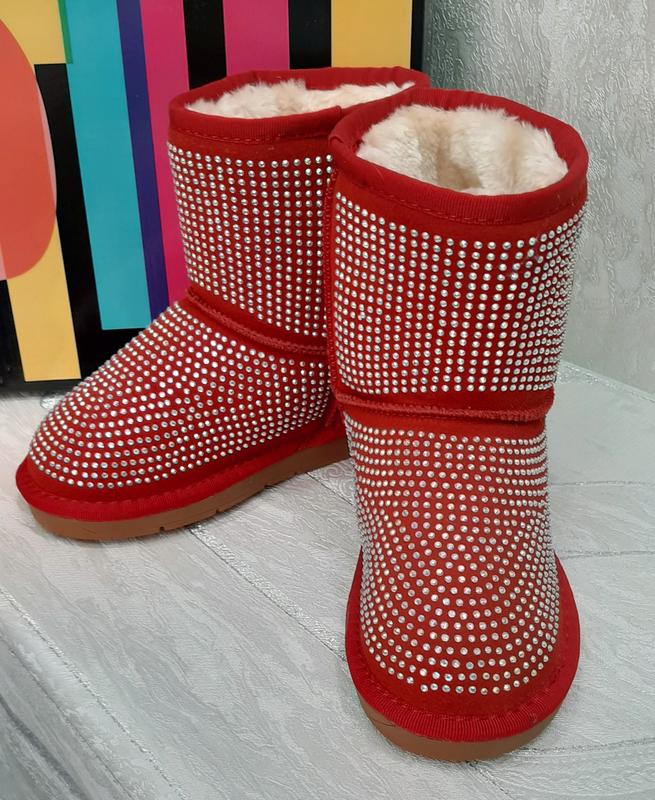 Уггі на дівчину р-ри 32(20см),33(20,5см),34(21см),35(21,5см),36(22см) Маломірять,йдуть на один розмір менше.З камінцями,які добре тримаються.Верх натуральна замша,утеплені штучним хутром.Легкі та комфортні.Відмінна якість.