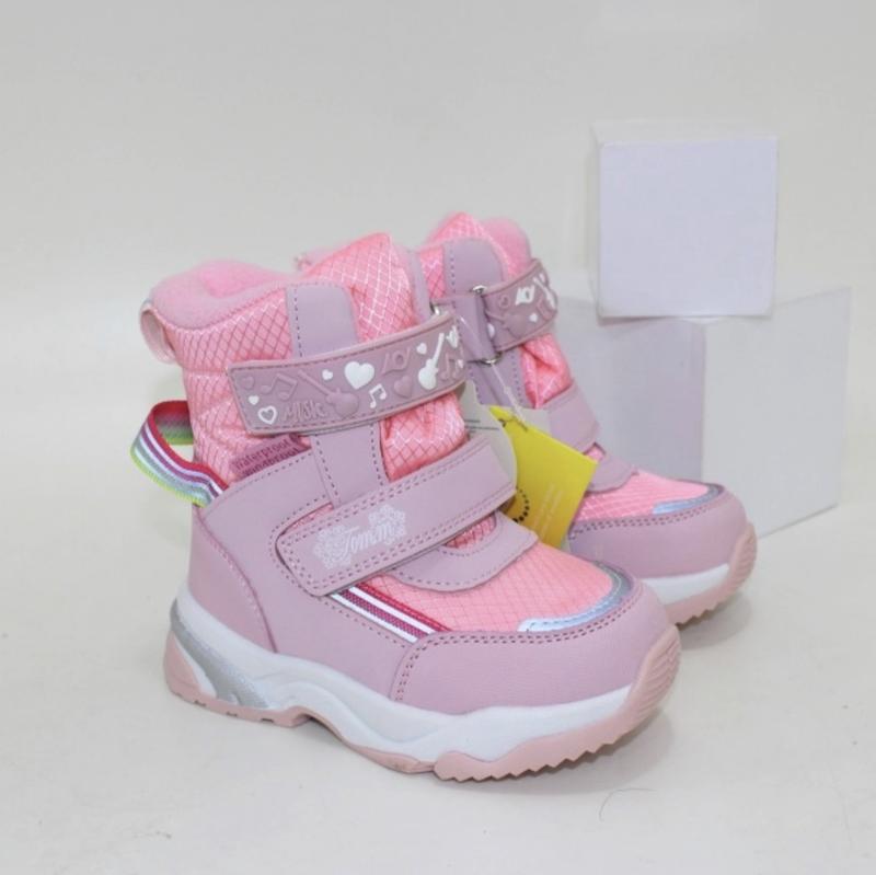 Розовые зимние ботинки для девочек на липучках Код: 114381 (10245B) Бренд: Marianna Материал верха искусственная кожа / текстиль Материал стельки штучне хутро Цвета в наличии розовый Сезонность зима, осень-зима Страна производитель Китай Замеры по стельке 22-14.3см 23-15.0см 24-15.7см 25-16.5см 26-17.0см