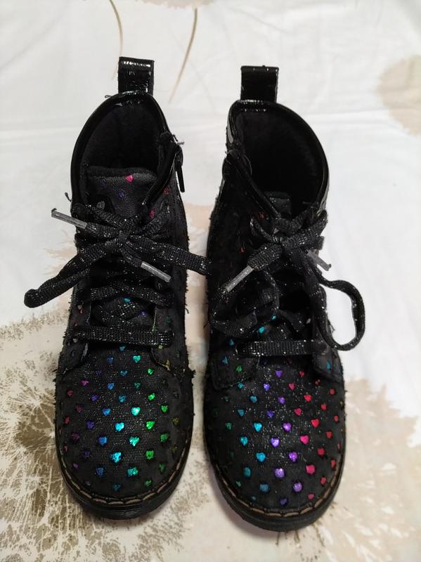 Модные, демисезонные сапожки, ботинки, майки в сердечки для девочки 31 р-20 см по стельке в отличном состоянии-смотрите фото.