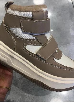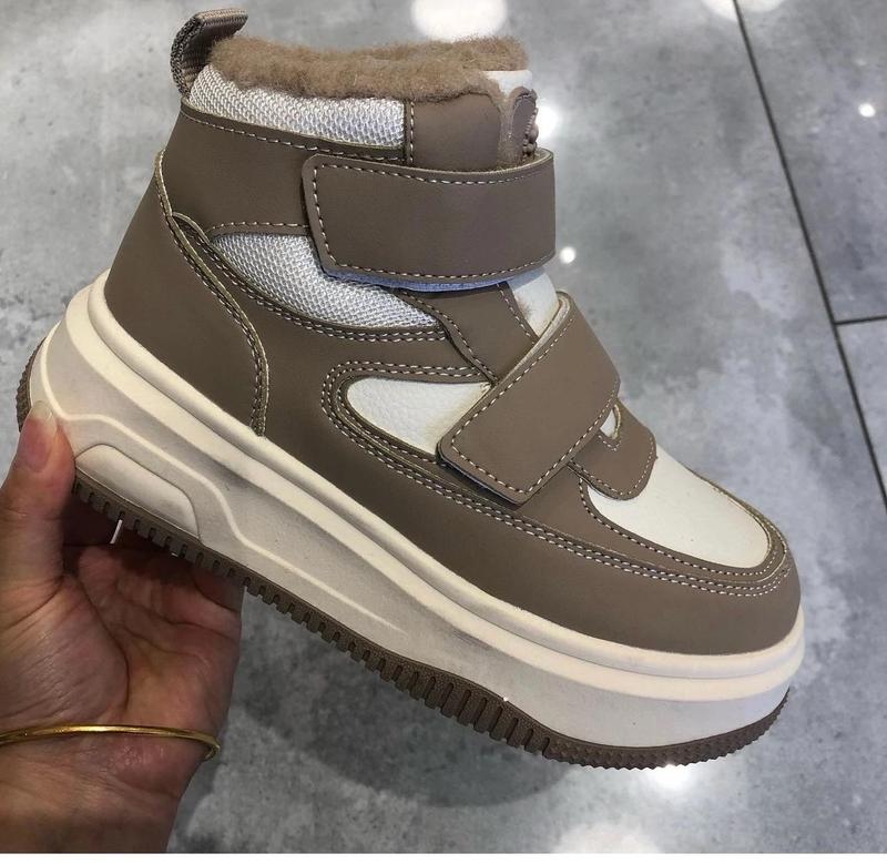 Мега стильна новинка тм Том.М Верх качественная эко кожа Фиксация шнуровка и боковая застежка Внутри густой теплый мех (натуральная овчина 60%). цвет беж + коричневый 33 размер 21.3 см 34 размер 22 см 35 размер 22,7 см (2 шт 36 размер 23.3 см (2 шт 37 размер 24 см 38 размер 24.7 см