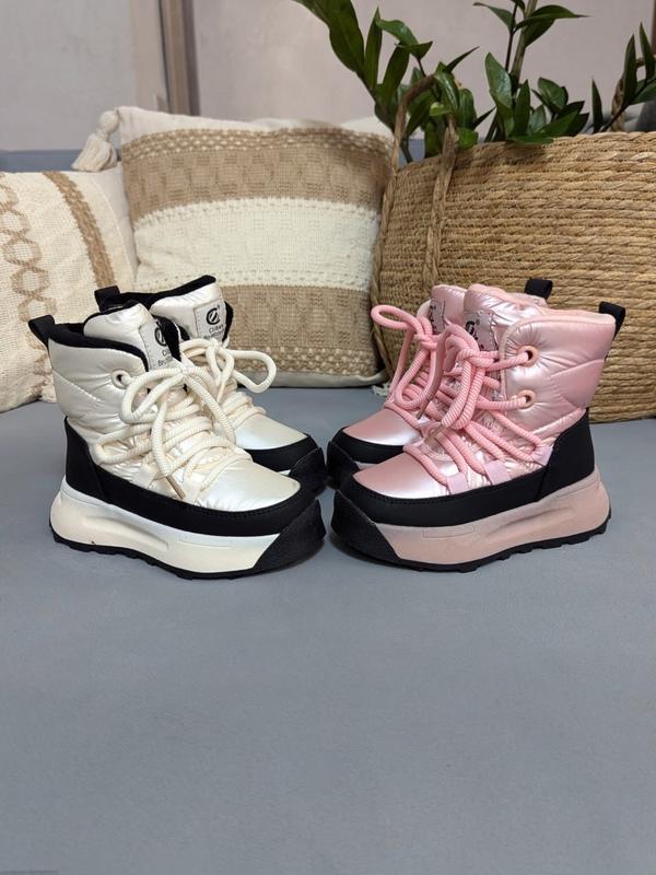 Стильная Зимняя новинка для девочек от т.к. C.l.i.b.e.e. Верх эко кожа и водонепроницаемый материал, который не пропускает влагу и холод. Внутри густой теплый мех. Сбоку есть замочек. Легкие Размеры: Молочные ✅ 27р-18см 28р-18,5см 29р-19,2см 32р-21 см ✅✅ Стоимость : 1170 грн =============== Розовые ✅ 27р-18см 28р-18,5см 29р-19,2см 32р-21см ✅✅ Стоимость : 1170 грн арт81