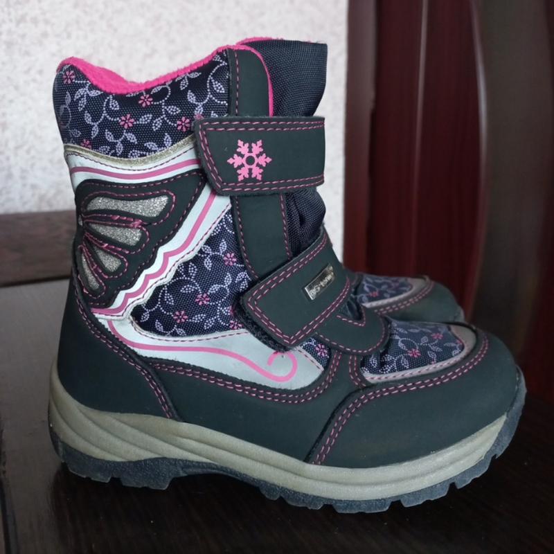 Термо-ботинки B&G, размер 30, стелька 19см. Очень теплые, не промокают. Не подойдут на высокий подъем стопы.