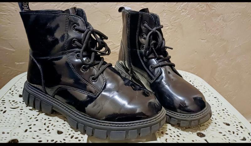 Подростковые ботинки из лакированной экокожи на байке в красивом состоянии, стелька 24 см