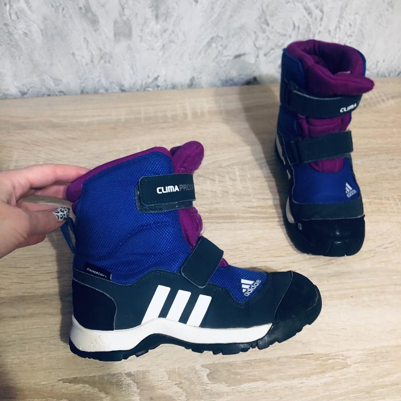 Прочные темоботинки фирмы adidas Размер 33 Стелька 21,5 (рекомендуется на ногу от 20 см. ) Состояние хороший, нюанс на одном носке, можно зарисовать (цена подходящая), не промокают. Задавайте вопросы, с удовольствием ответьте.