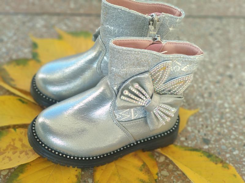 🍂ДЕМІСЕЗОННІ ЧЕРЕВИКИ🍁 Дуже зручні та красиві🤍, виблискують на сонечку☀️. Збоку застібка. Прикрашені бантиком🎀 та стразами. Колір сріблястий. Розміри в наявності: 22, 23, 24, 25, 26, 27. 🚐 Відправка в день оплати Укрпоштою та Новою поштою. 💳 Наложений платіж по передоплаті 150 грн. Також можете оформляти Безпечну оплату.