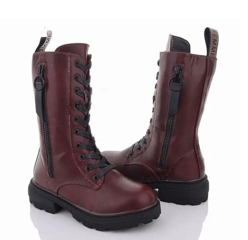 Ботинки зимние для девочки высокие бордо Эффектная стильная модель высоких зимних ботинок для девочек. Для производства таких зимних ботинок производитель использовал высококачественный кожзаменитель. Застегиваются зимние ботинки сбоку на молнию, спереди на шнуровку, что позволит регулировать модель по объему ноги. Утепленные зимние ботинки на девочек искусственным густым мехом. Сбоку украшены декоративной молнией. Подошва в таких ботинках толстая и за счет этого ноги у вашего ребенка не мерзнут. На подошве есть протектор, благодаря чему удобно и комфортно ходить. Данная модель ботинок для девочки отлично будет смотреться с любым стилем в одежде. Замеры: 32 – 20,5 см; 33 – 21 см; 34 – 21,5 см; 35 ― 22 см; 36 – 22,5 см; 37 – 23 см