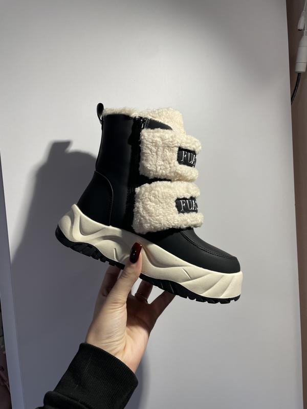 Завышенные зимние ботиночки Впереди две липучки с мехом Сбоку молния Трендовая модель года На завышенной подошве Легкие и удобные