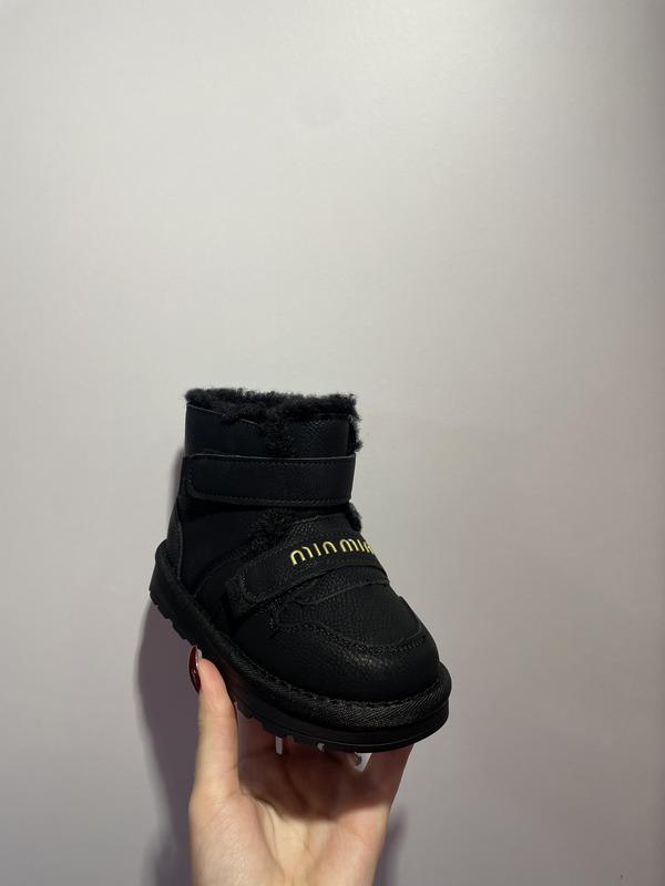 Детские сапожки для зимних прогулок Доступны в черном цвете На удобных липучках, для хорошей фиксации ножки Снаружи эко-кожа, внутри мягкий мех Размеры: 26-31