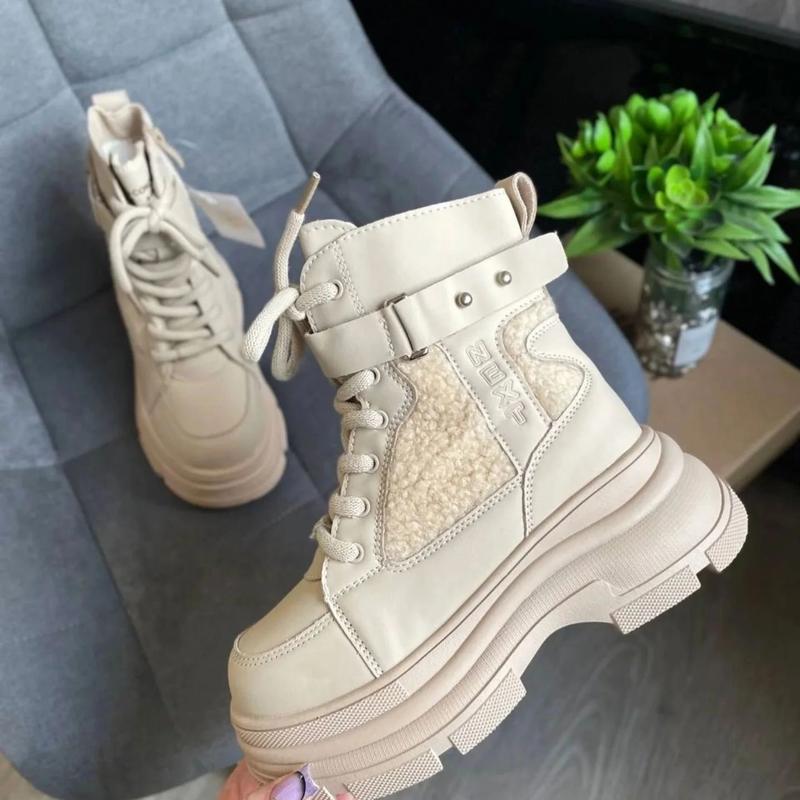 😍 Шикарные светло-бежевые сапожки для девушек.😍 В мега стильном дизайне этого года. Сбоку на замочке, спереди на шнуровке. Внутри утеплены овчиной (60% натур.). Не важкі. 33р. - 21,6см 34р. - 22,3см 34р. - 22,3см 35р. - 23,0см 36р. - 23,6см 37р. - 24,2см