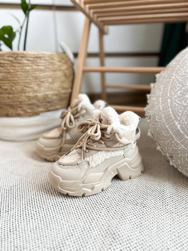 Изготовлении из экокожи. Вставки - плотная ткань «Тедди.» Утеплены овчинкой и искусственным мехом. Фиксируются шнуровками и боковым замком. Размеры: 33 – 21,0 см 34 – 21,6 см 35 – 22,3 см 37 – 23,6 см