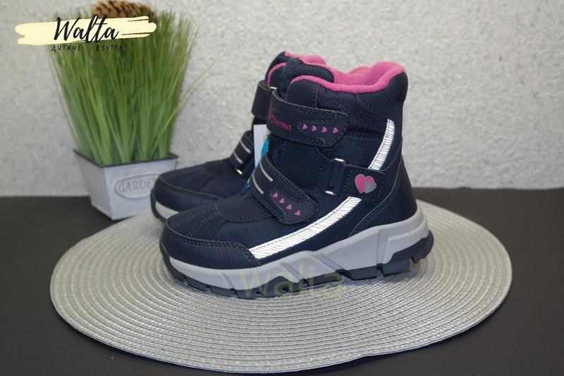 28-32р b&g b&g би детские зимние термо ботинки термики сапожки девочкам синие с ро...