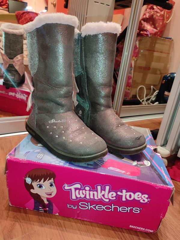 Длинна стельки 21см. Мерцают. Подсветку можете включать, и выключать по желанию. Очень теплые и комфортные. Сзади розовый бант. Имеются нюансы, показанные на фото. Облегающий носок, отпала одна пайетка, с внутренней стороны пятки обдерта ткань. На суху погоду. После одного ребенка. Проходила в них два года с осени до весны, была еще обувь, но эти ботиночки любила больше других, поэтому взялась часто.