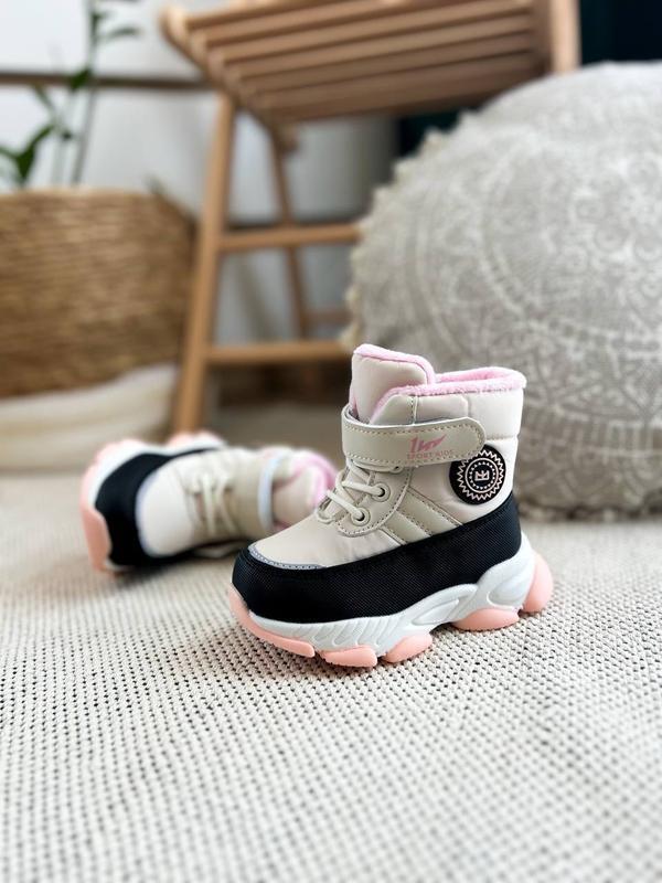 Изготовлены из плащевки и экокожи. Хорошо держат тепло.Есть носочек от взбивания. .Утепленные овчинкой 60% и искусственным мехом -40%.Сбоку есть замочек .Фискиваются липучкой.Легкие. Размеры: 23-15,4 см 24-15,9 см 25-16,4см 27-17,7 см