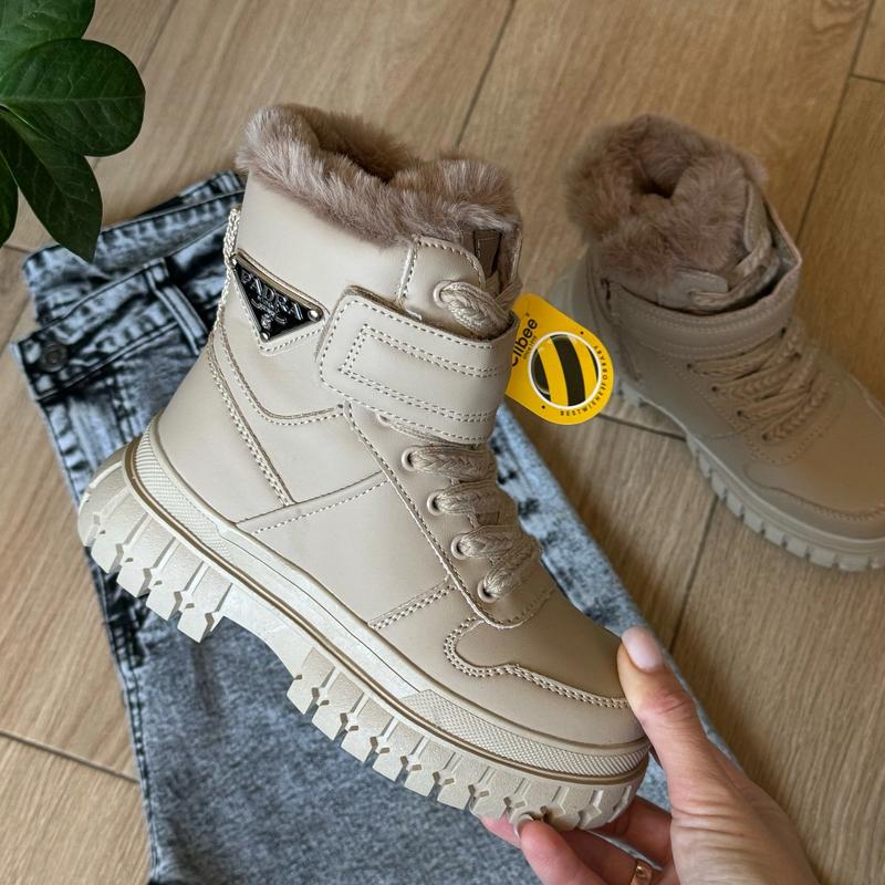Зимние ботинки ТМ Clibee Очень теплые и качественные Верх качественная эко кожа Утепление внутри овчина (60%) Застежка молния и шнуровка.широка липучка Беж темный наличие уточнять) 36 размер 23 см