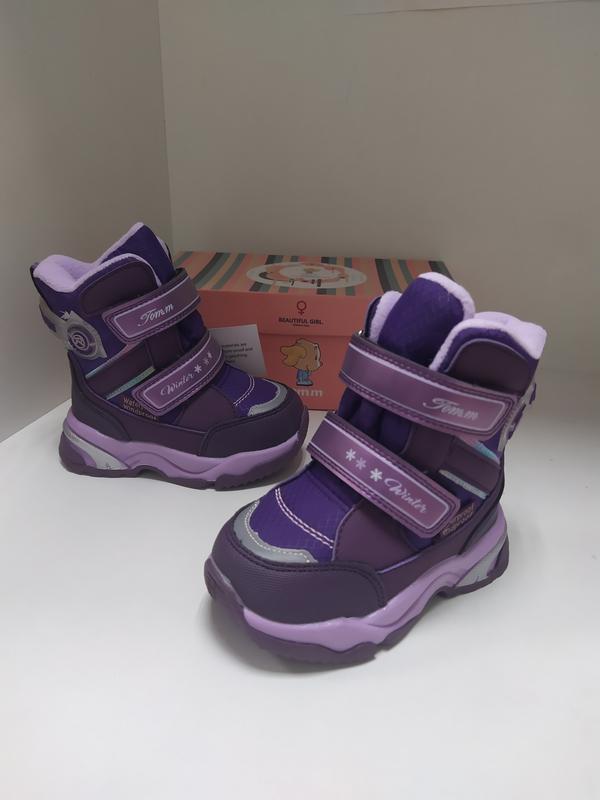 Зимние термо ботинки, сноубутсы для девочки. Застёжка липучка. Утеплитель овчина. Лёгкие, удобные. Отличное качество. Размеры: 22р. 14см. 23р. 14.5см. Нет 24р. 15.5см. Нет 25р. 16.5см 26р. 17см. 27р. 17.5см. Нет