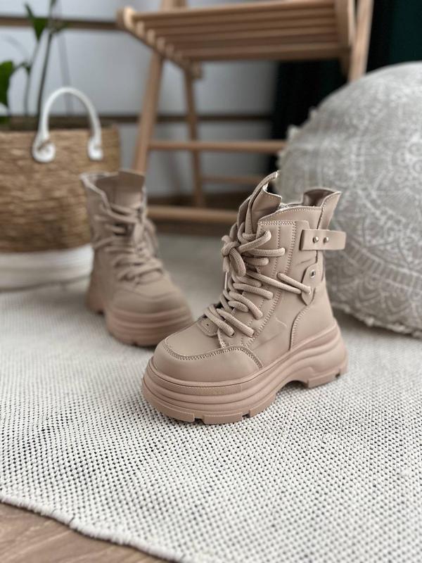 Изготовление из экокожи. Утепленные овчинкой и искусственным мехом. Фиксируются шнуровками и боковым замком. Размеры: 32 – 21,1 см 34 – 22,5 см 35 – 23,0 см 36 – 23,9 см 37-24,5 см