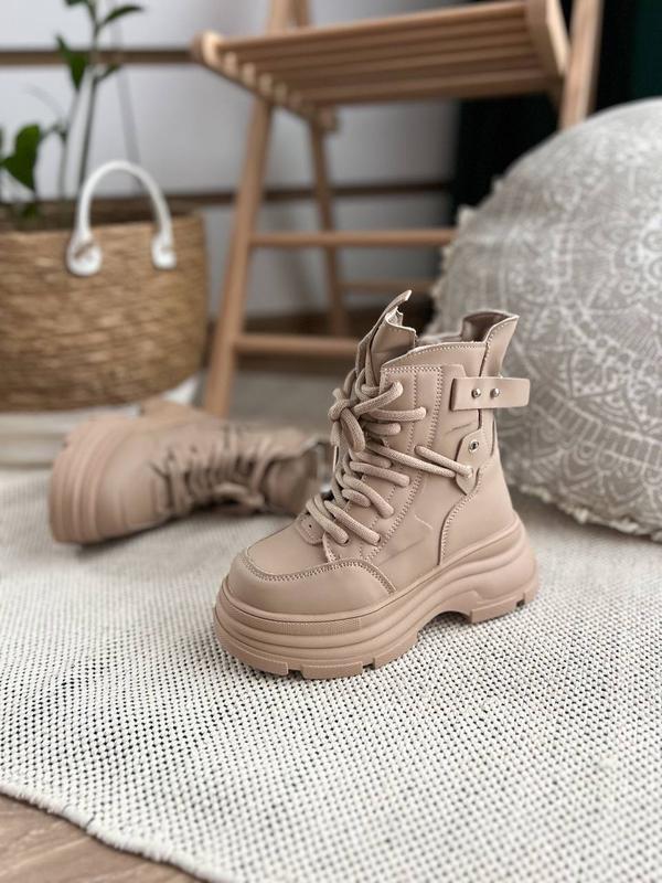 Изготовление из экокожи. Утеплены овчинкой и искусственным мехом. Фиксируются шнуровками и боковым замком. Размеры: 32 – 21,1 см 34 – 22,5 см 35 – 23,0 см 36 – 23,9 см 37-24,5 см