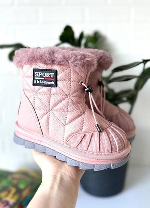 Модні трендові уги дівчаткам Стильні, легкі , зручні Ніжна буде в теплі та сухою Верх виконаний с якісної еко шкіри,носочок прорезинений , що захищає від збивання та потрапляння вологи Всередині-густе хутро 60% овчина Застібка-бічна змійка 32 - 20,3 см