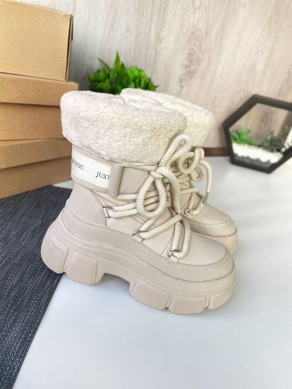 Шикарные светло-бежевые сапожки для девушек. В мега стильном дизайне этого года. Сбоку на замочке, спереди утяжка шнуровкой. Внутри утеплены овчиной (60% натур.). Не важкі. 1200 грн 35р. - 23,0см Измерение сделано внутри по стельке лично мной, погрешность 1-2мм допустима.