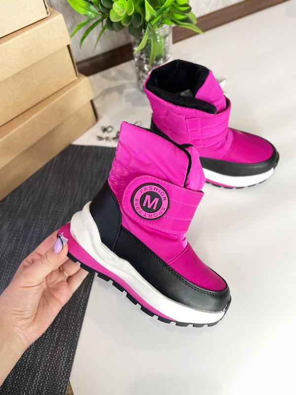 Крутезные ярко-розовые зимние дутики. Хорошо фиксируют ножку липучкой. Внутри теплый густой искусственный мех. Моделька легесенка. 1000грн 27р. - 17,7см 28р. - 18,3см 30р. - 19,7см 30р. - 19,7см 32р. - 21,0см Измерение сделано внутри по стельке лично мной, погрешность 1-2мм допустима.