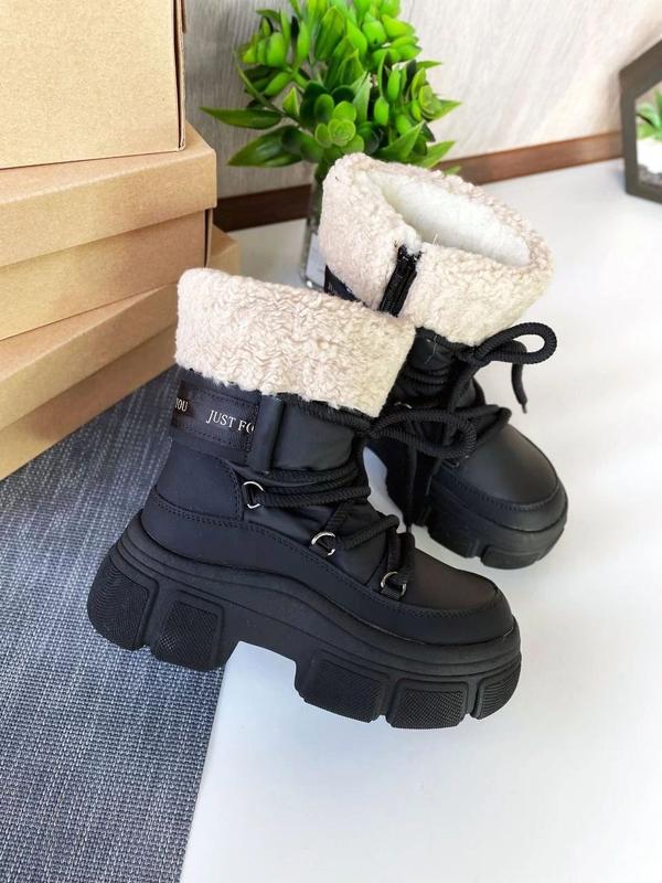😍 Шикарные черные сапожки для девушек.😍 В мега стильном дизайне этого года. Сбоку на замочке, спереди утяжка шнуровкой. Внутри утеплены овчиной (60% натур.). Не важкі. 33р. - 21,6см 34р. - 22,3см 35р. - 23,0см 36р. - 23,6см ❗ Измерение сделано внутри по стельке лично мной, погрешность 1-2мм допустима. ▪️N-41кт