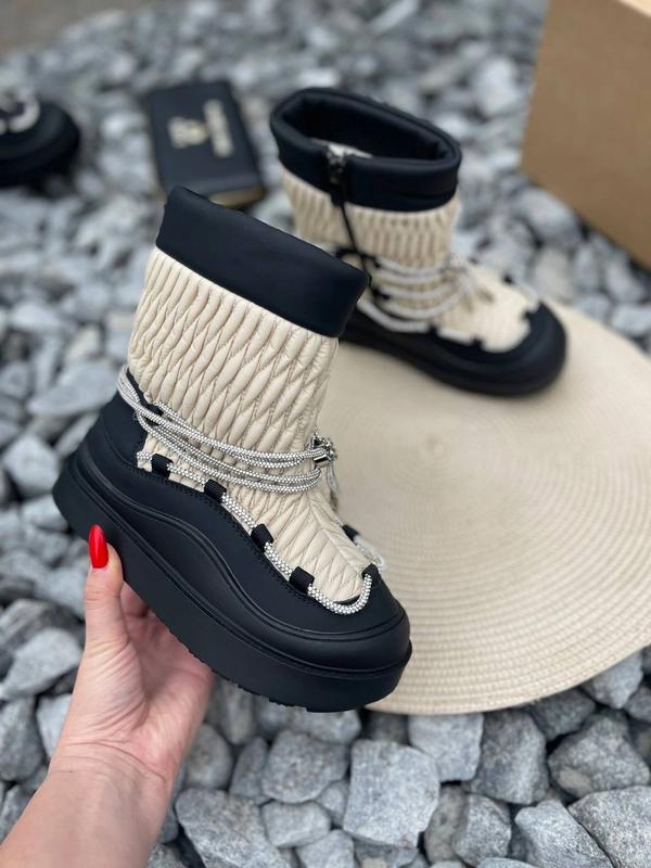 Дуже модна зимова трендова моделька Новинка!! З блискучою шнурком утяжкою, що шикарно виглядає! Верх якісна плотна екошкіра Утеплені густою овчиною (75% натуральна ) Застібка :блискавка збоку і шнурівка (регуліровка повноти) Підошва плотна , морозостійка, легенькі по вазі Плотна пʼяточка Устілка внутрі в см: Р.28-18,2 см-1п Р.30-19,6 см-1 п Р.31-20,3 см-1 п Р.32-21 см-1 п