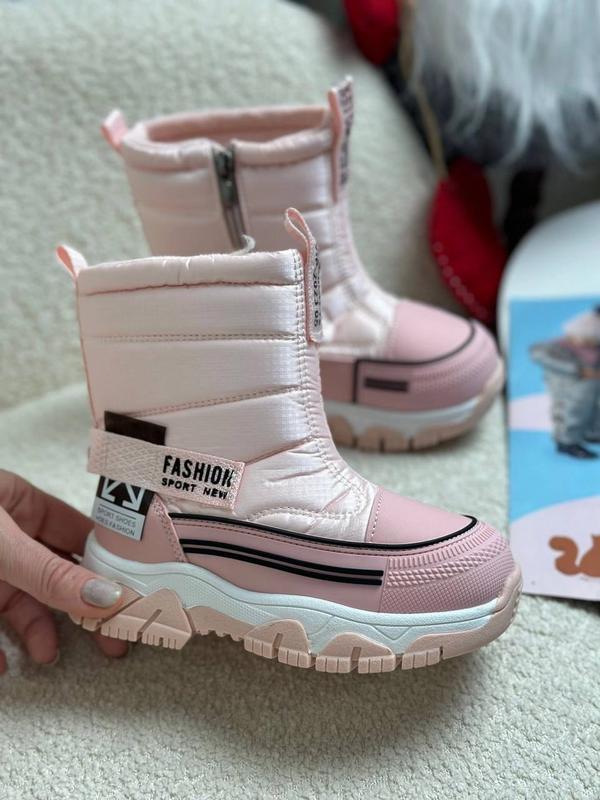 Дутики для девочек, которые не промокают, легкие и подходят на любой подъем ножки. В нежном пудровом цвете В середине на овчине Сбоку есть замок 27 размер 28 размер 29 размер 30 размер 31 размер 32 размер
