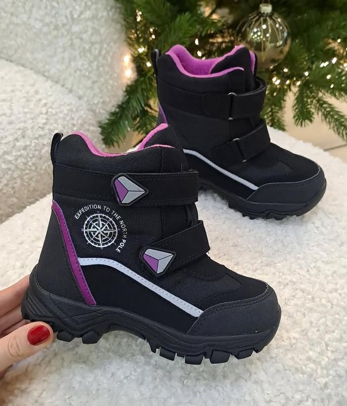 Легкі водонепроникні дутики зима Матеріал: - верх екошкіра та водовідштовхувальна тканина - всередині натуральне хутро - устілка хутро - підходять на високий підйом - легкі за вагою, гнучка підошва - застібка 2 липучки, язичок цільнокроєний, волога та сніг усередину чобітка не потраплятиме Заміри устілки зроблено по знімній устілці від краю до краю 27-17,5 см 30-19,5 см