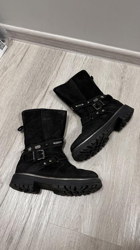 Дуже стильні високі черевики із замші на хутрі. Дуже теплі. В гарному стані. Всі змійки робочі Розмір 32 (20 см устілка)
