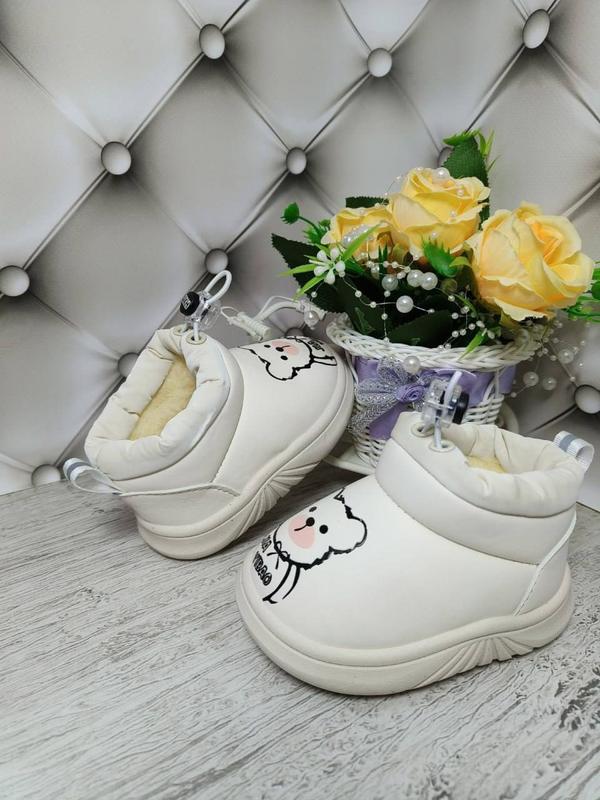 Всередині штучне хутро Верх: еко шкіра Є резинка з фіксатором Заміри зроблені по устілці , допустима похибка + - 1-2 мм Розміри: 20р - 12,3 см 21р - 13,3 см 22р - 13,8 см 23р - 14,6 см 24р - 16,3 см 25р - 16,5 см