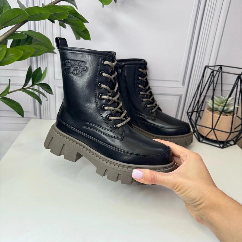 Зимние ботинки из новой коллекции ТМ Clibee Хороший дизайн, очень теплые и качественные. Верх качественная эко кожа Утепление внутри овчина (60%) Застежка молния и шнуровка Черные 32 размер 21 см