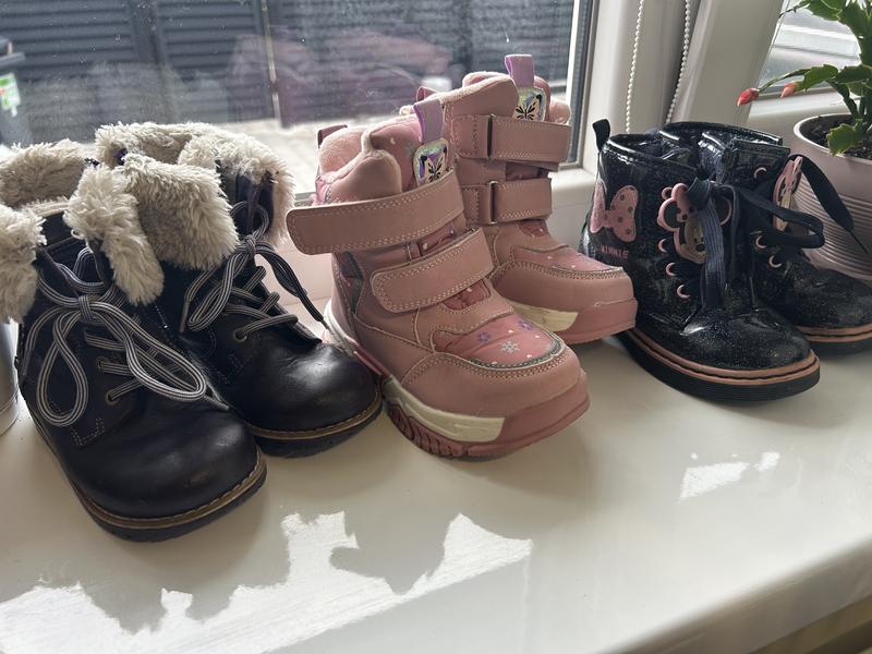 Дитячі чобітки, 26розмір, Рожеві дуже теплі та зручні за рахунок липучки збоку та змійки. В гарному стані. По стельці 16,5см -450грн З Мікі маусом 26розмір , стан дуже гарний демісезон по стельці 16,5см-400грн Фіолетові чобітки 26 розмір по стельці 16,5см до -5 морозу підійдуть 100грн Можливий торг Більше фото в приват