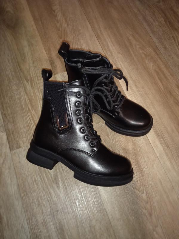 Ботинки на девочку демисезонные осень -весна Бренд: Paliament Верх: искусственная кожа-искусственная замша Внутри: флис Материал стельки: флис Цвет: черный Высота платформы: 2 Высота каблука, см: 4 Материал подошвы: пвх Сбоку молния,на шнурках 32 - 20,7 см 33 - 21,5 см 34 - 22 см 35 - 22,8 см