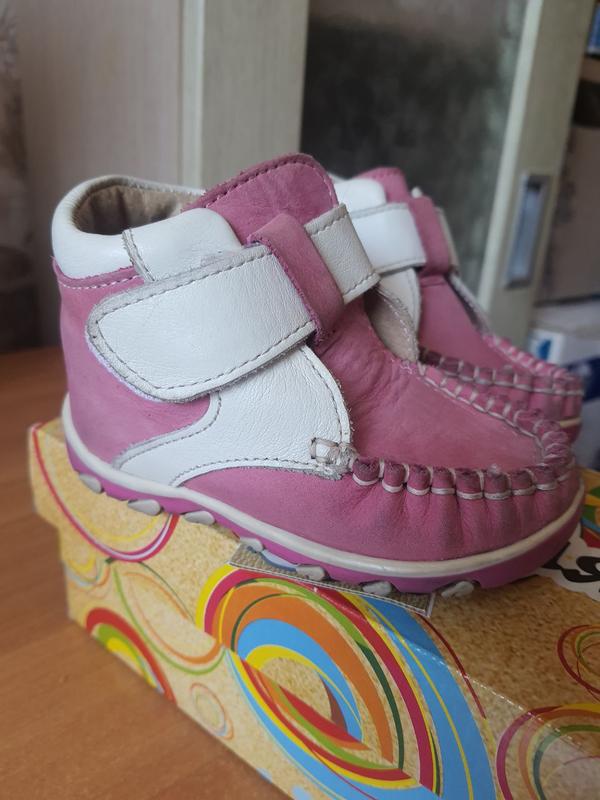 Ботинки для девочки, натуральная кожа. Размер 21, длина стельки 11см. Хорошее состояние, пару раз одели. Дополнительное фото пришлю, пишите в ЛС Отправлю Укрпочтой, Новой почтой, можно Мист экспресс.