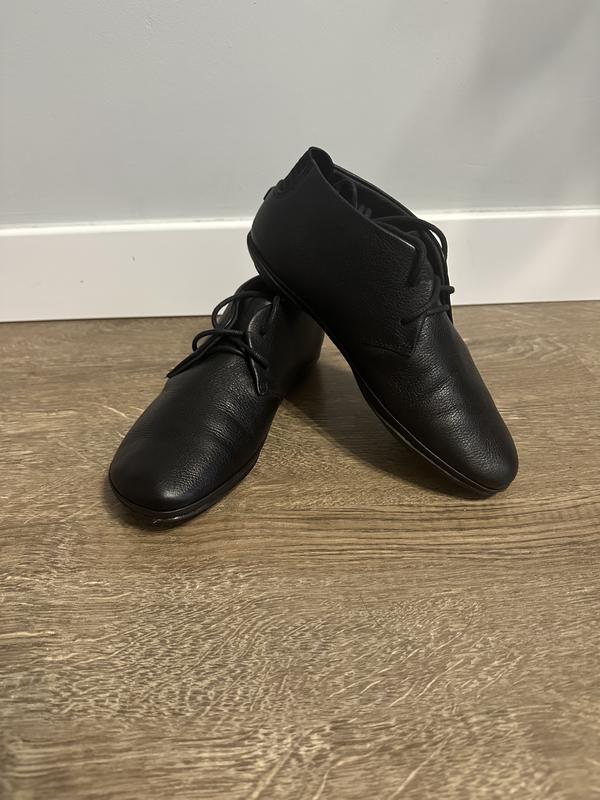 Черевики з колекції Camper Right Nina Колір чорний Верх натуральна шкіра, підкладка шкіра, яка комфортна для стопи і запобігає натиранню та текстиль Легка і амортизаційна устілка з піни EVA Широкий носик запобігає тиску на пальці Злегка ущільнений резинкою задник Підошва шкіра та синтетичний матеріал Вживані , видно по устілці що одягались Розмір 35(21,5см)