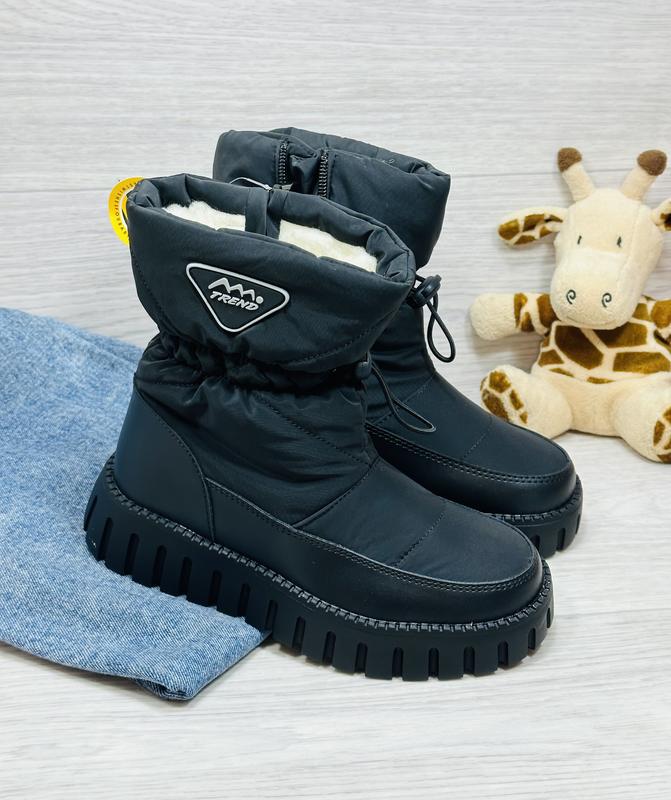 Крутезні дуті чобітки дівчаткам. Новинка цього сезону. Верх - еко шкіра високої якості, водовідштовхувальна термо-тканина В середині - густе натуральне хутро ( овчина ) Підошва- мʼяка морозостійка не слизька Застібка - бічна змійка 34 - 21,7 см