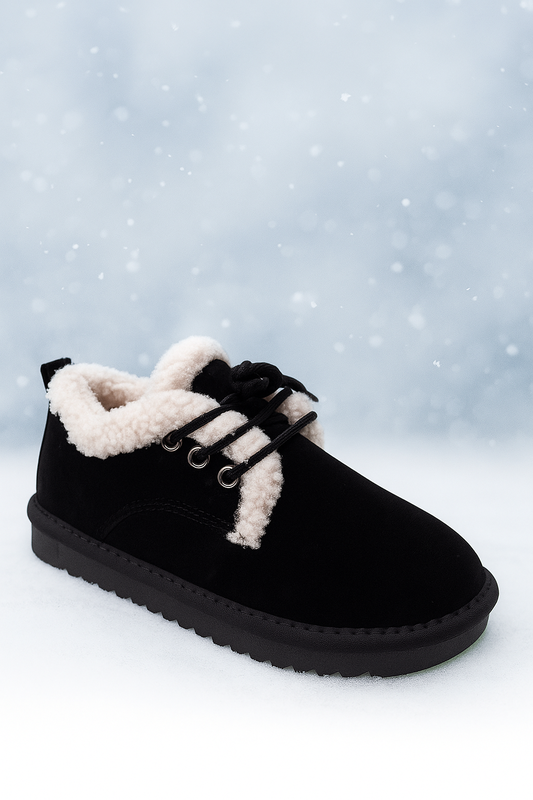 Сноубутсы стильные теплые зимние с мехом teddy черные с белым натуральная замша, внутри на...