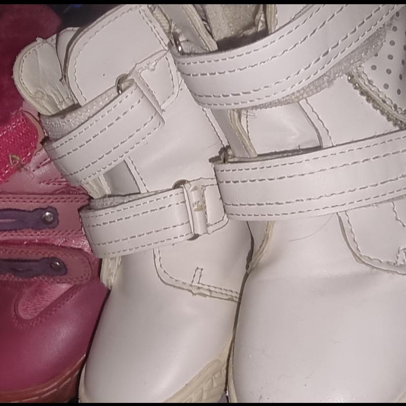 детские сапожки белые новые 2 роазы оделили, не имеет недостатков подошва 19см,розовые носили,но идеальное внешний вид 18см по подошве.Обедние 200грн,или каждая по 150грн.Все работает,молние, липучки.