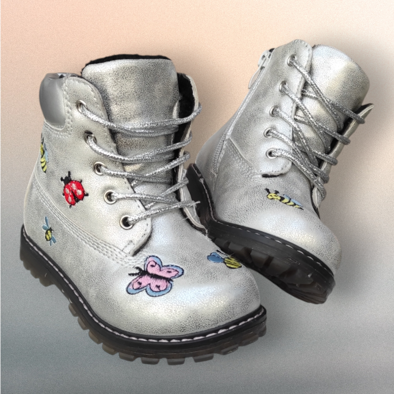 Детские зимние ботинки для девочки серебро бабочки красивые (новые уценка )