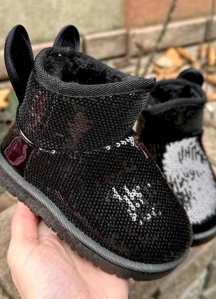 Угги изготовлены из высококачественных материалов и имеют мягкое меховое утепление. Блестящие пайетки придают стильный вид. Мягкий мех внутри обеспечивает идеальную защиту от холода. Гибкая, антискользящая подошва идеально подходит для активных прогулок в любую погоду. Замеры по стельке: 31 – 18,5 30 – 18 29 – 17,5 28 - 17 27 – 16,5 26 - 16 25 – 15,5 24 - 15 23 – 14,5