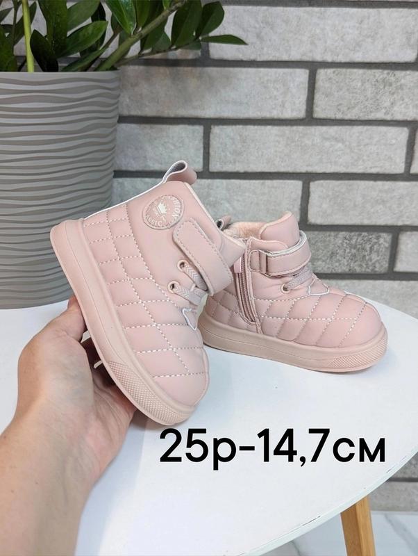 Стильна Зимова новинка для найменших дівчаток Вони неймовірні. Це просто любов. Верх якісна еко шкіра. Всередині утеплені густим теплим хутром ( овчина 60%).Фіксація на липучку. Збоку є замочок. Дуже легесенькі,немов пір'їночки. На ніжках не відчуваються. Якість бомбезна. Розміри: 25р-14,7см