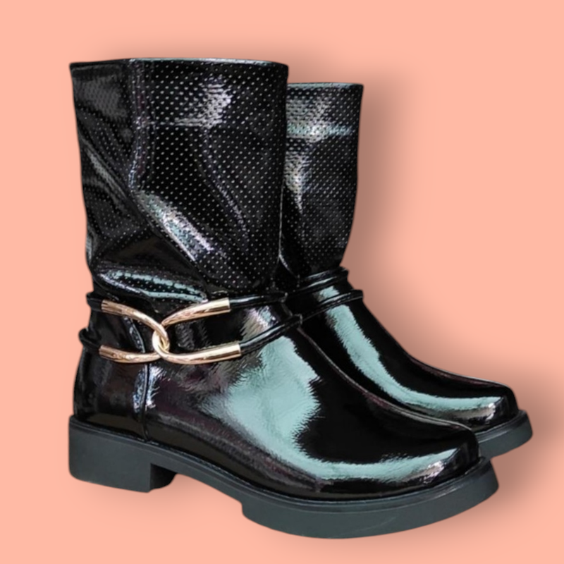 Детские чёрные лаковые деми ботинки для девочки на каблуке весна осень стильные
