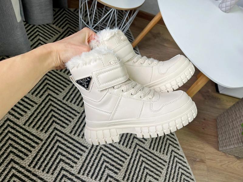 Зимние ботинки ТМ Clibee Теплые и качественные Верх качественная эко кожа внутри овчина (60%) Фиксация молния и шнуровка.широка липучка цвет светлый беж ЦИНА 1250 32 размер 20 см