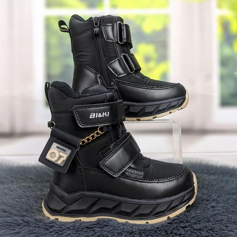 Ботинки дутики зимние детские для девочки черные biki 5547