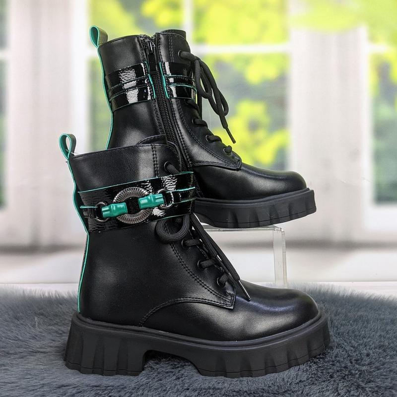 Ботинки зимние детские для девочки черные с зеленым Paliament 5481 Верх - качественная эко кожа Подкладка - мех шерстяной Подошва ПВХ. Высота подошвы 2-3,5 см Застежка - шнурки + боковая молния Высота от пятки 12 см Для выбора своего размера, смотрите размерную сетку на данную модель: 32р - 20,2 см 33р - 21 см 34р - 21,5 см 35р - 22 см 36р - 23 см 37р - 23,5 см Перед оформлением заказа уточняйте наличие размера!!! Замеры стельки делаем сами, вручную. Отправка Новой или Укрпочтой. Оплата осуществляется на карту Приват банка, или наложенным платежом, с минимальной предоплатой на доставку. Или же можете воспользоваться безопасной оплатой через Шафу.