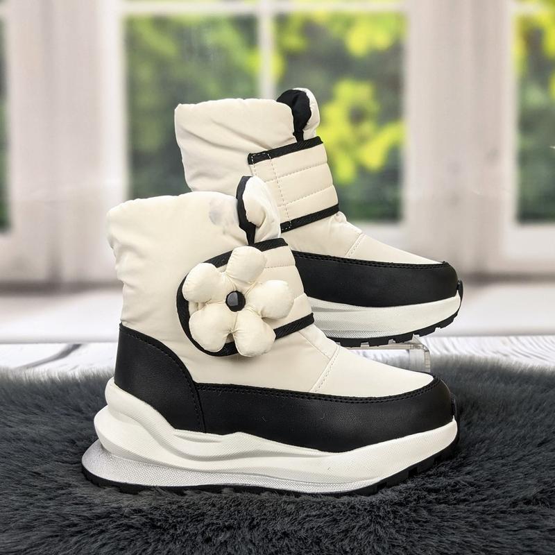 Ботинки дутики зимние детские для девочки бежевые с черным kimboo 5592