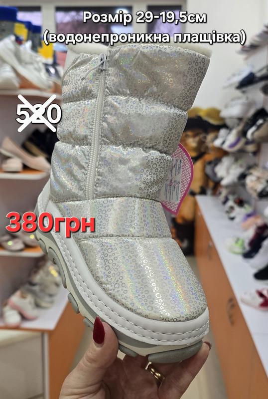 Серебристые зимние сапожки из водонепроницаемой ткани, удобная молния. Размер: 29 (19,5 см). Цена: 380 грн.